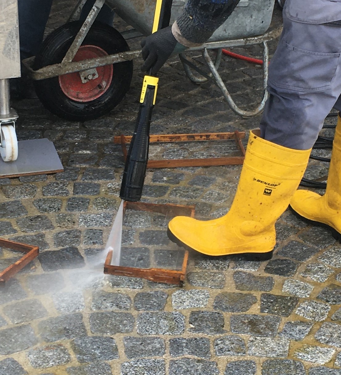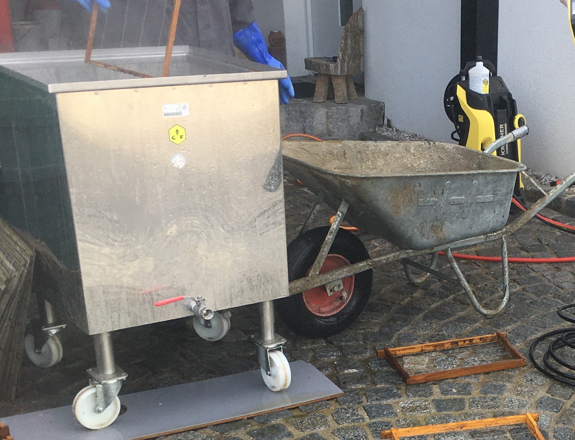 Nun werden die Wachs- und Schmutzreste mit Hochdruck abgewaschen und in der Sonne getrocknet. Jetzt noch kurze Kontrollen und dann weiter zum Mittelwandeinlöten, mehr dazu in Teil 2 ……