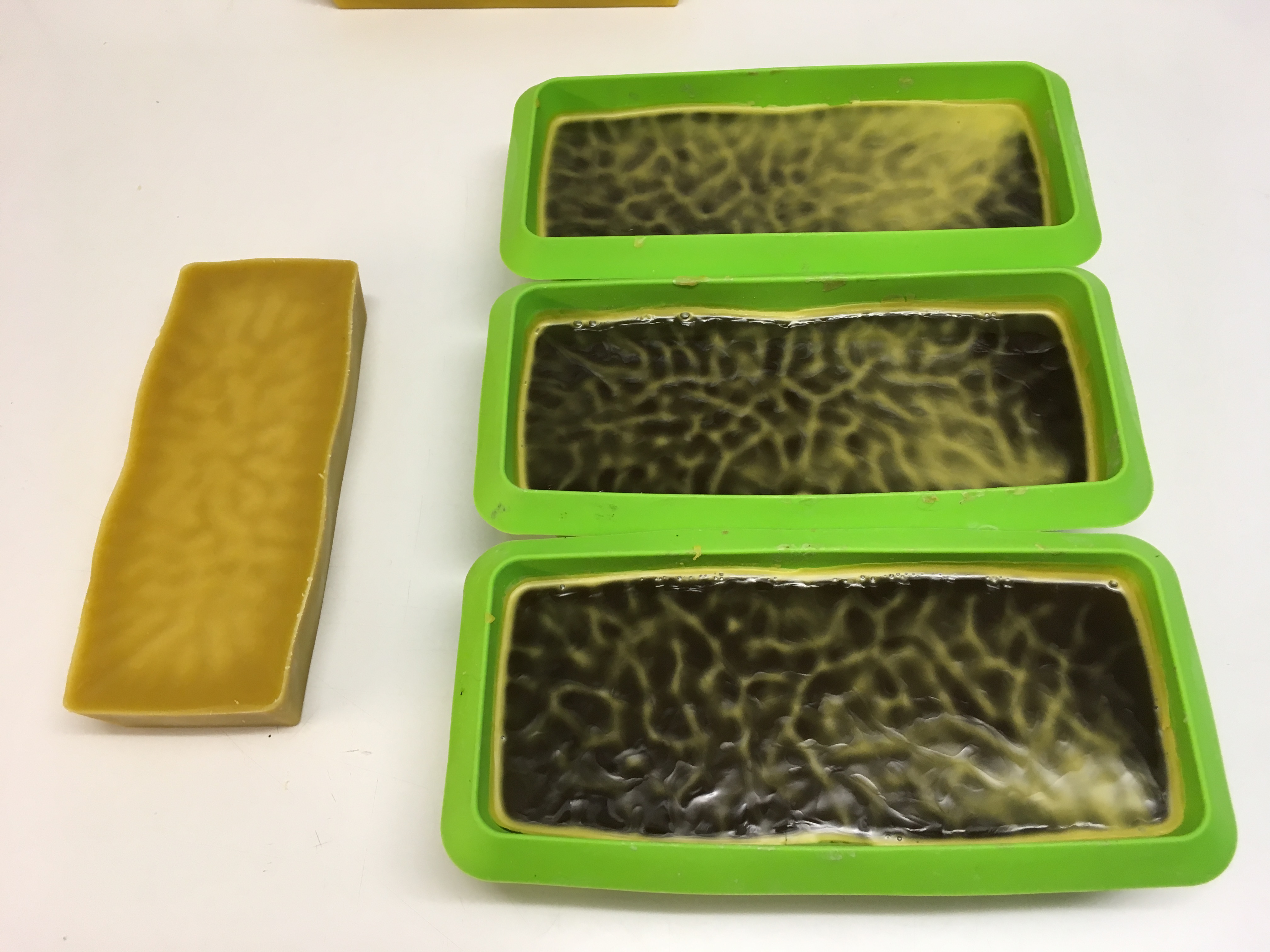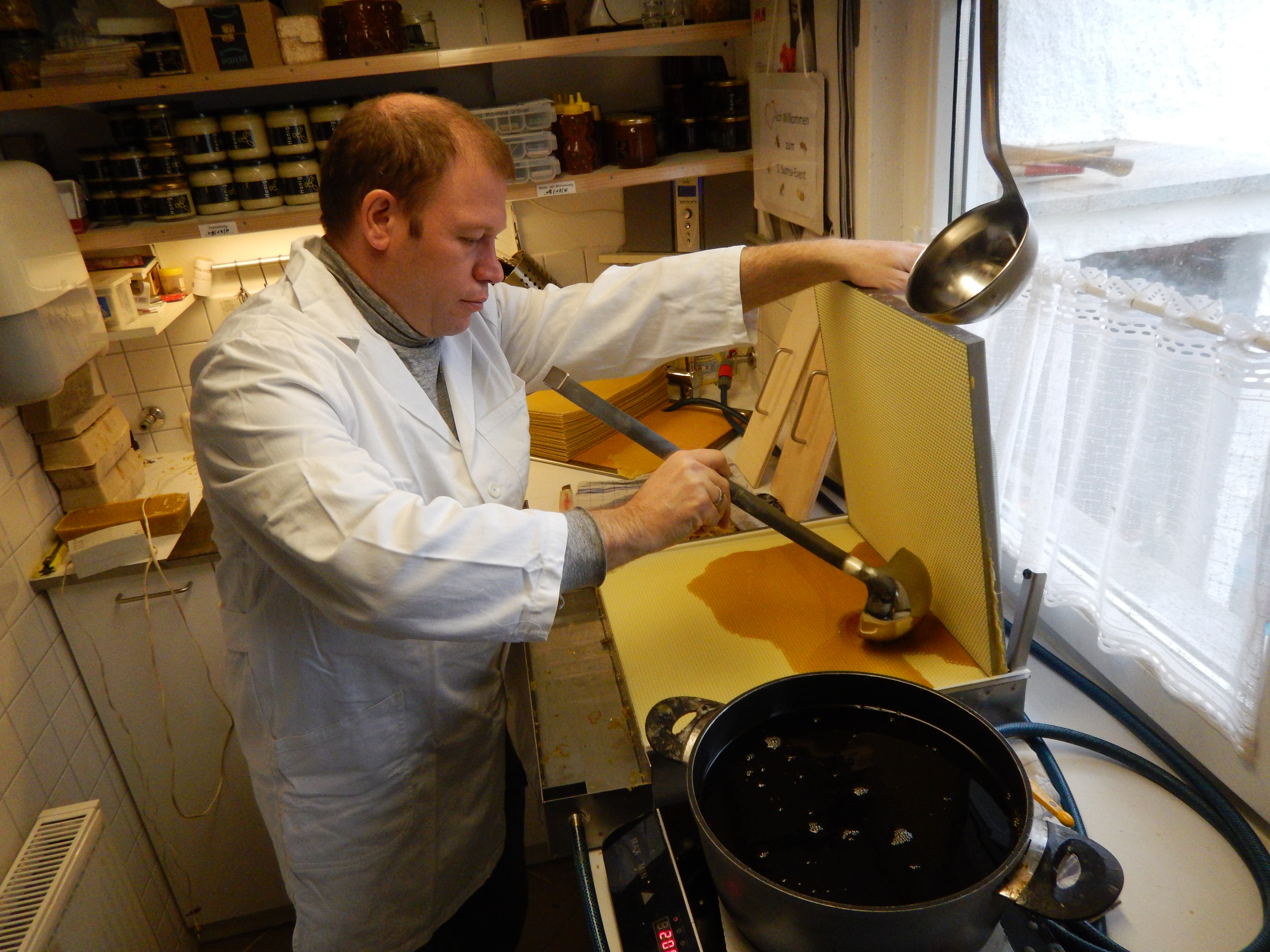 Zum Mittelwandeinlöten wird das ausgeschmolzene Wachs in Blöcke gegossen und anschließend zu Mittelwänden verarbeitet.