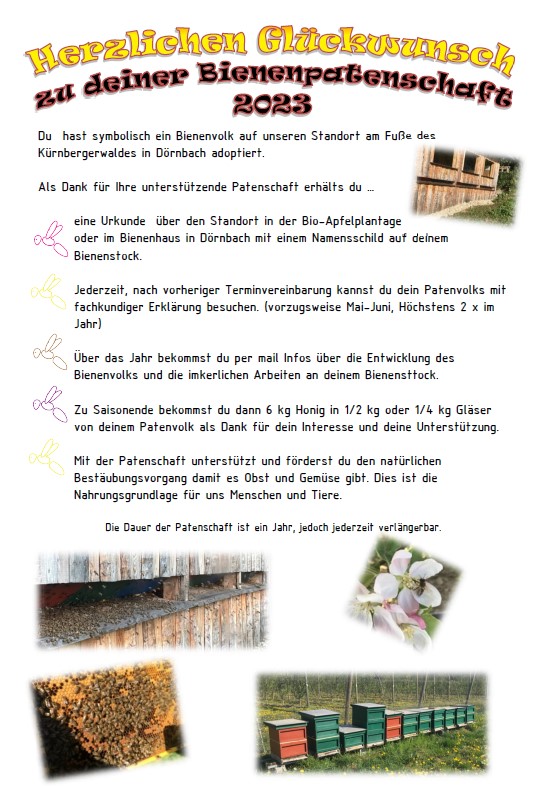 Sollte jemand an einer Bienenpatenschaft für 2023 Interesse haben, sie einfach weiterschenken will, oder die bestehenden um ein Jahr verlängern möchte, alles ist möglich, einfach melden.