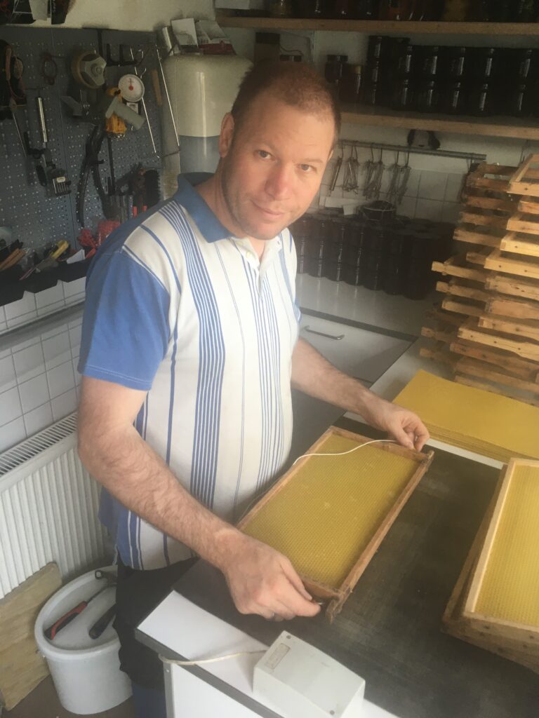 - Wir verwenden ausschließlich unseren eigenen Wachskreislauf.(d.h. wir schmelzen die Altwaben aus, reinigen unser Bienenwachs, pressen die Mittelwände und löten sie neu ein.)