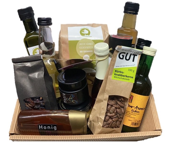 Die Geschenkskörbe gibt es in 3 Größen, individuell nach Verfügbarkeit befüllt.